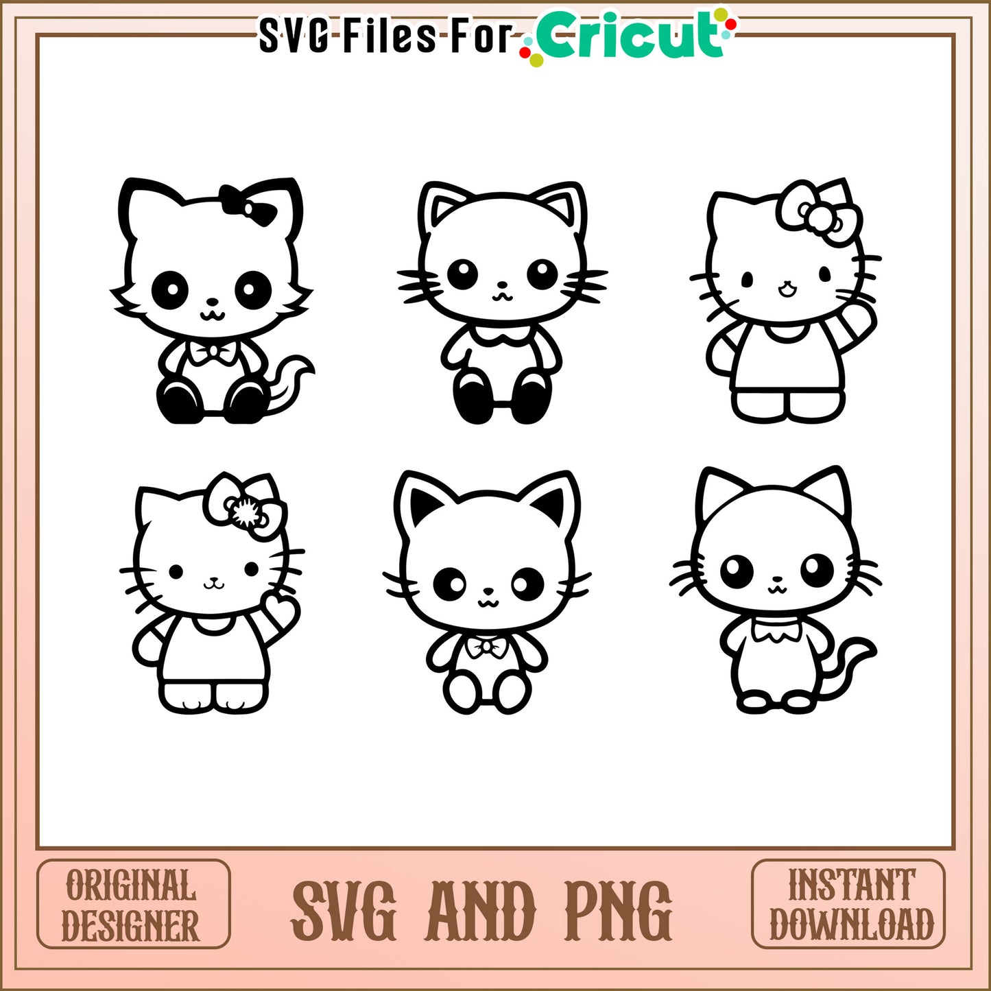 Hello kitty cute black white bundle svg is part of our cartoon collection, adding a playful touch to any craft project. Featuring a variety of characters, animals, and quirky themes, these SVGs are perfect for Cricut, Silhouette, and other cutting machines. Whether you're making kids' t-shirts, birthday party decorations, stickers, or digital illustrations, animated SVG files will bring your ideas to life with vibrant detail. These scalable vector graphics maintain quality at any size, allowing you to create high-quality prints on everything from cards to wall hangings.