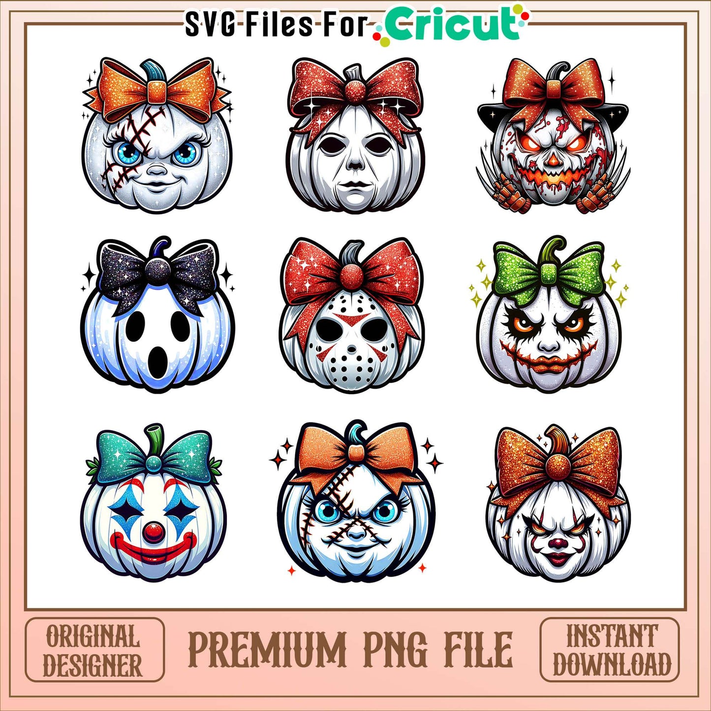 Horror characters head pumpkin halloween bundle png, horror characters png