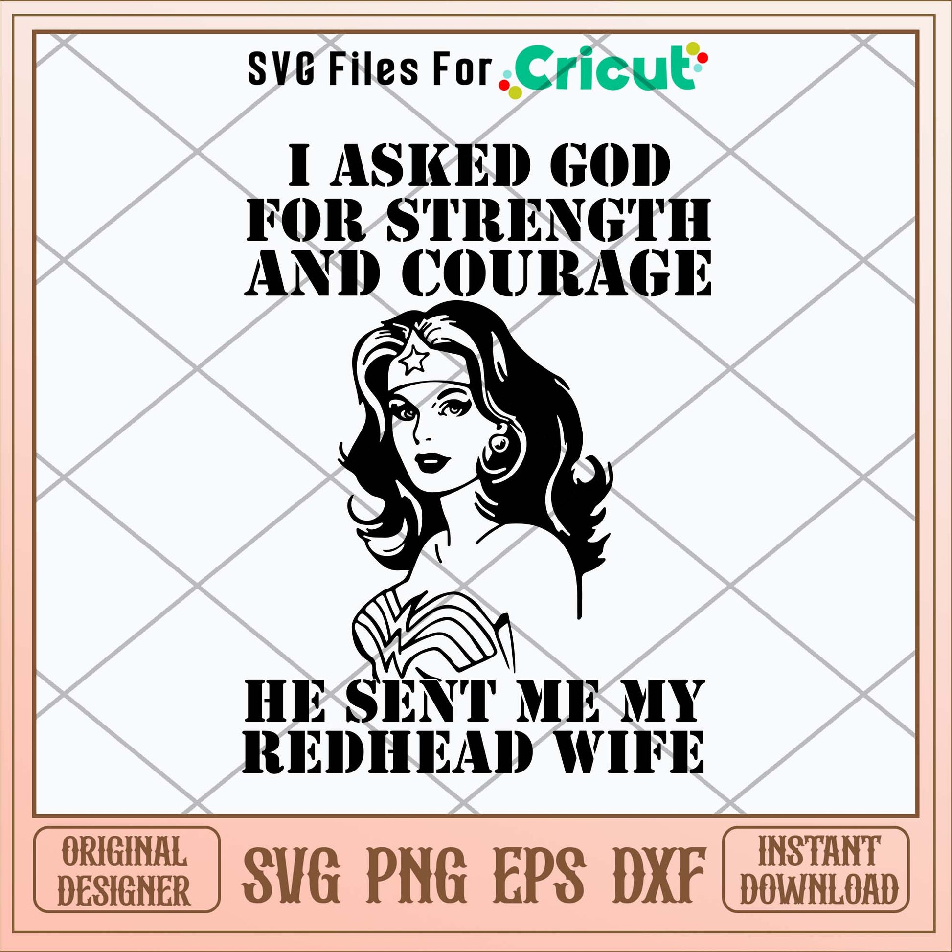 I Asked God For Strength And Courage He Sent Me My Redhead Wife Svg