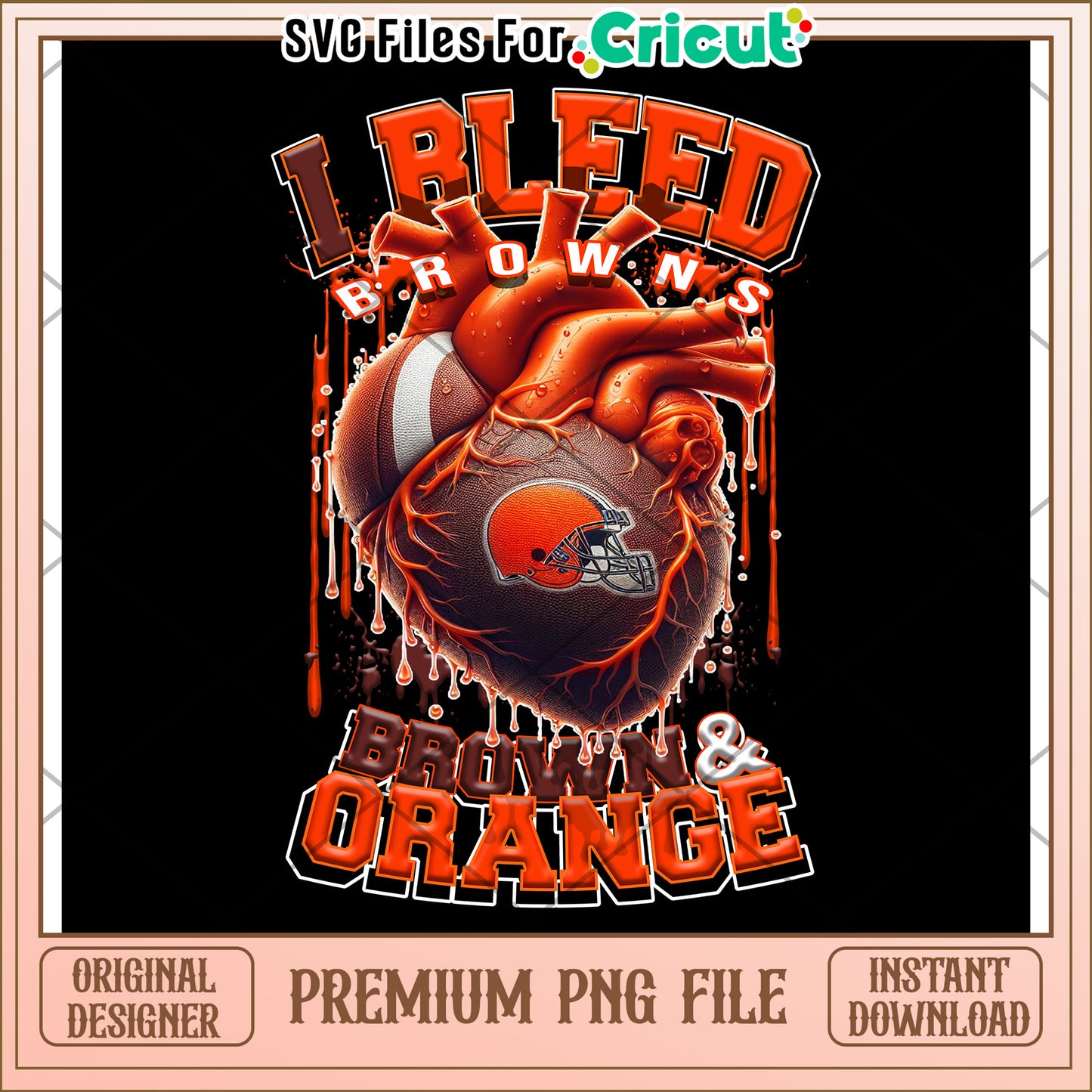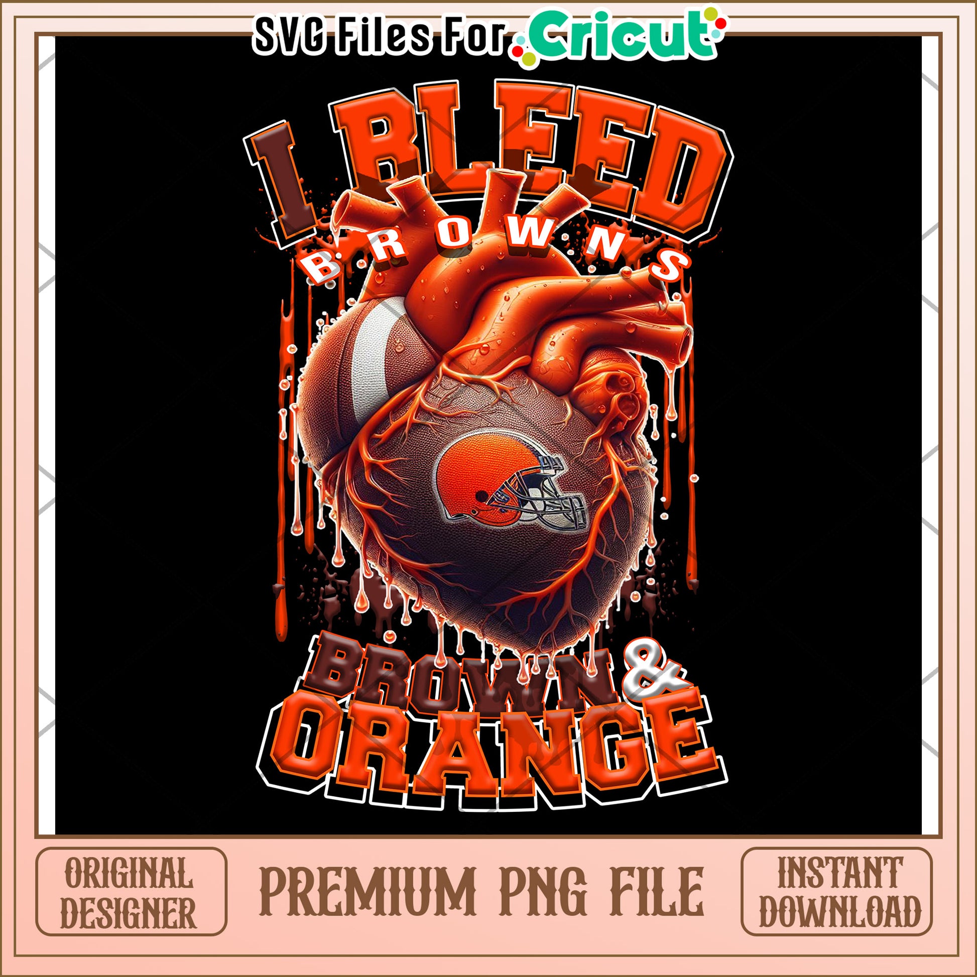 I Bleed Browns Football Heart Design, Premium PNG Instant Download