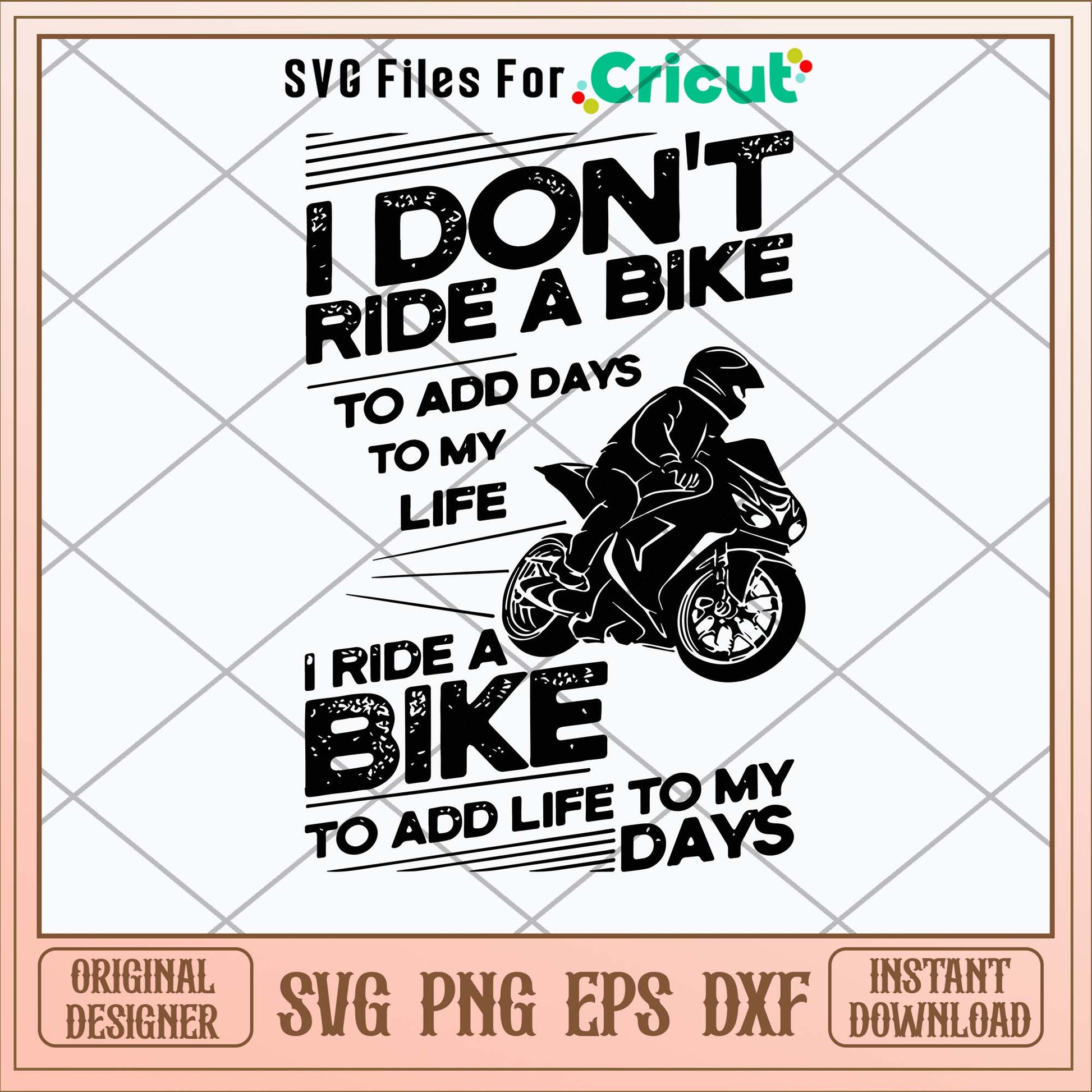 I Don_t Ride A Bike To Add Days To My Life I Ride A Bike To add Life To My Days Svg