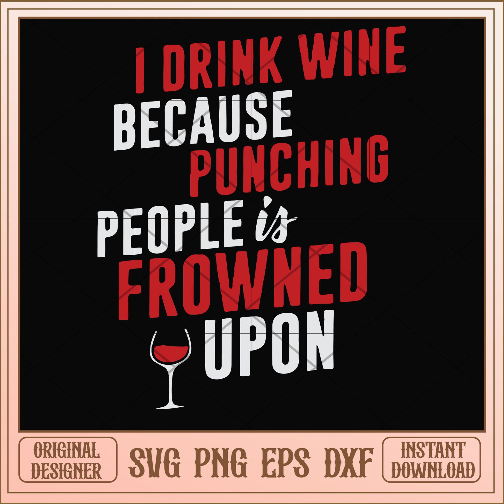I drink wine because punching people is frowned upon svg, wine svg, funny svg