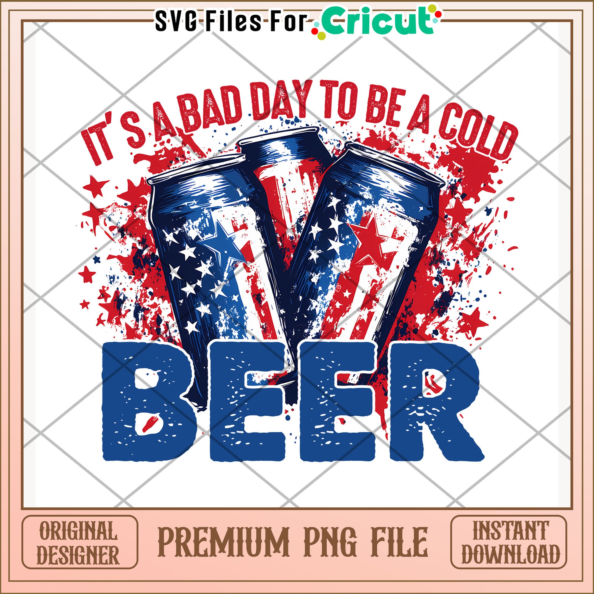 It's a bad day to be a cold beer png is part of our exclusive 4th of July collection, designed for easy DIY projects. Featuring high-resolution, transparent background PNG files, this patriotic set includes fireworks explosions, American flag motifs, stars and stripes motifs, and festive typography. Perfect for creating party invitations, t-shirt prints, banners, decals, and social media graphics, each PNG is meticulously optimized for stunning clarity and vibrant colors. Compatible with all major design software and cutting machines, our 4th of July PNGs simplify your creative workflow.