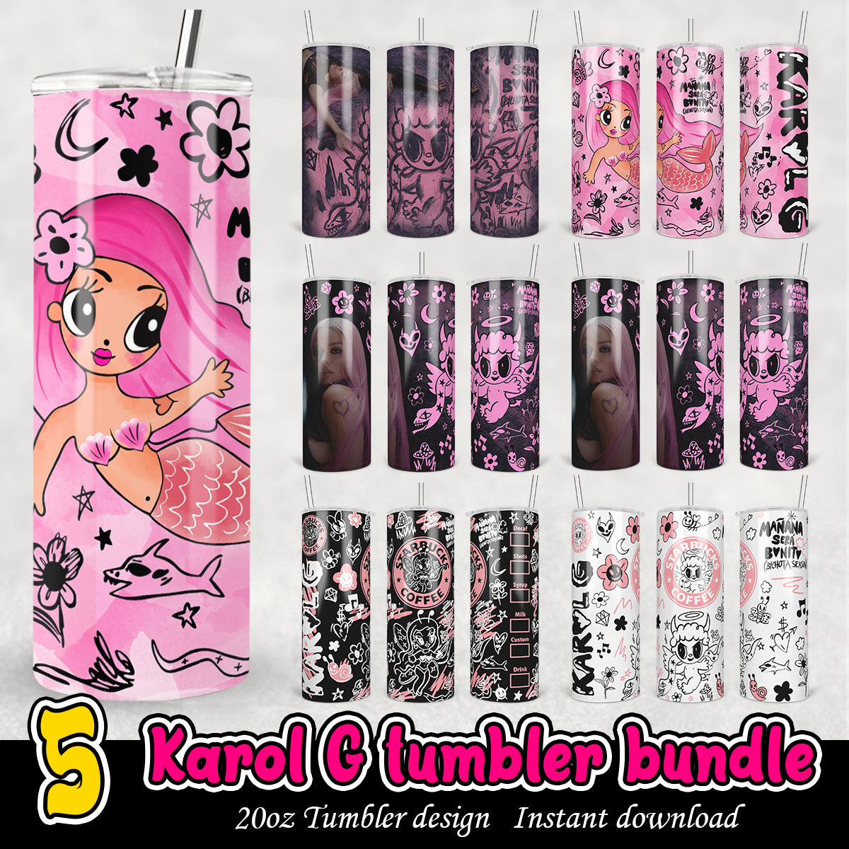 Karol G Tumbler Bundle, Karol G black and pink 20oz tumbler