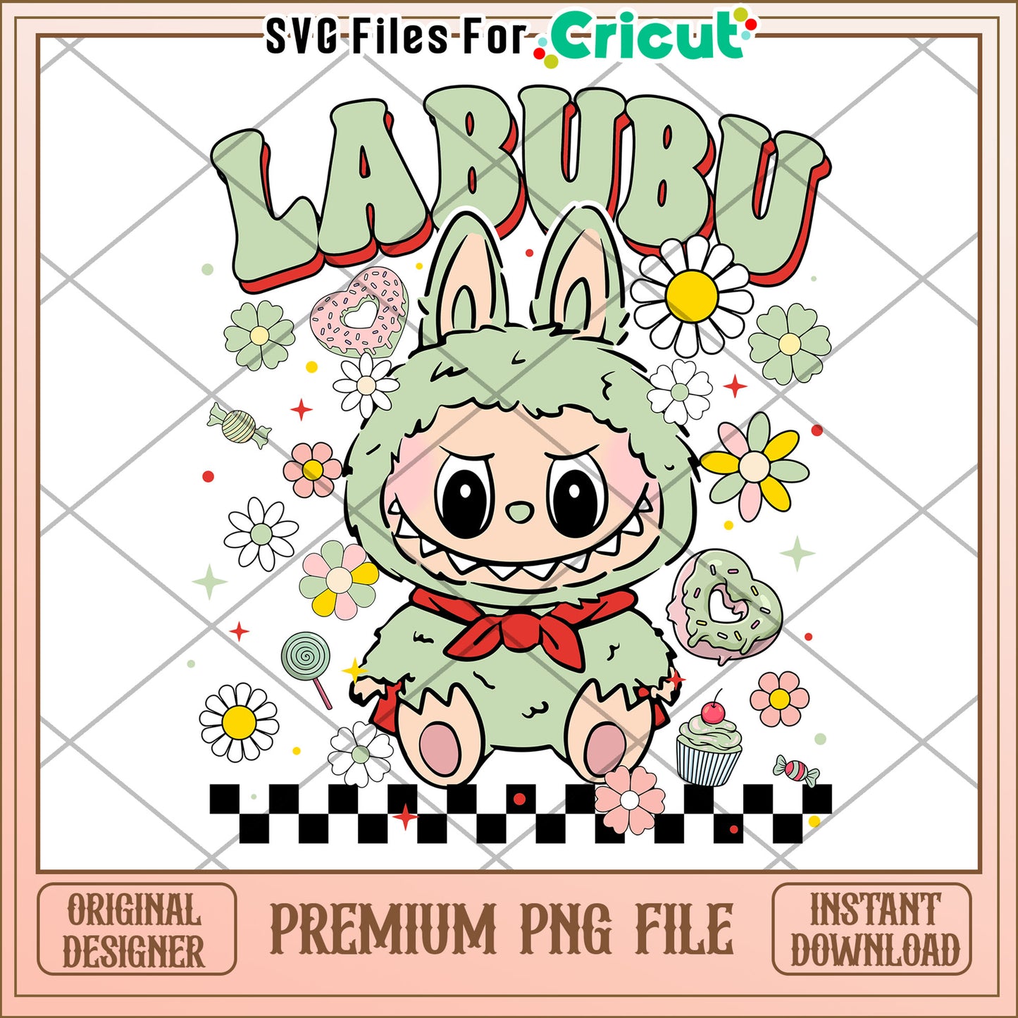Labubu funny green flower design png, labubu cartoon png, labubu popmart png