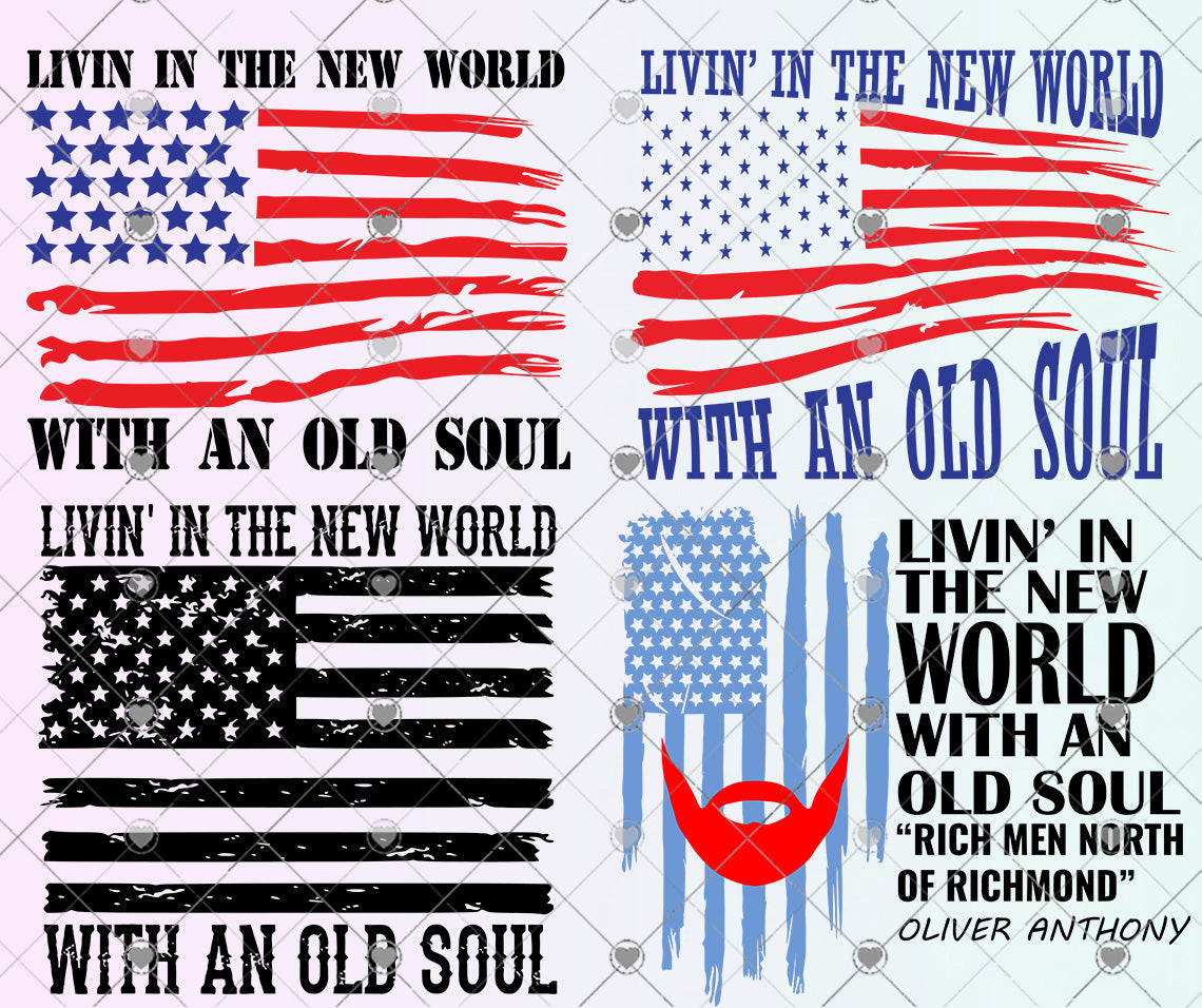 Living In The New World With An Old Soul svg, America Flag Rich Men North Of Richmond design svg, Blue Collar Oliver Anthony svg