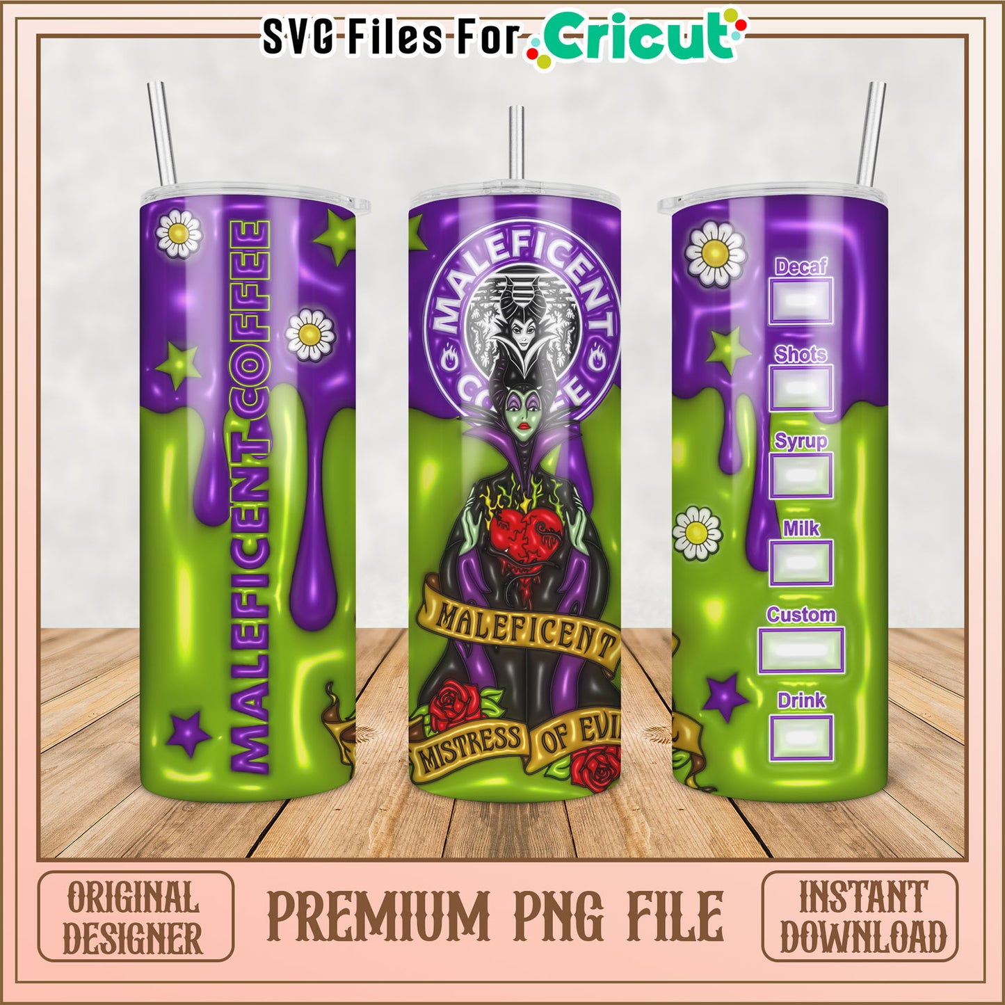 Maleficent Coffee Tumbler PNG Sublimation Design is a product in our Tumbler collection! Featuring high-quality, transparent-background graphics, these files are perfect for creating stunning tumblers that showcase your unique style. From vibrant patterns and trendy quotes to seasonal themes and custom designs, our tumbler PNG collection offers endless creative possibilities. Whether you're crafting for personal use, gifts, or small business projects, these designs are easy to use with sublimation, vinyl, or print applications.