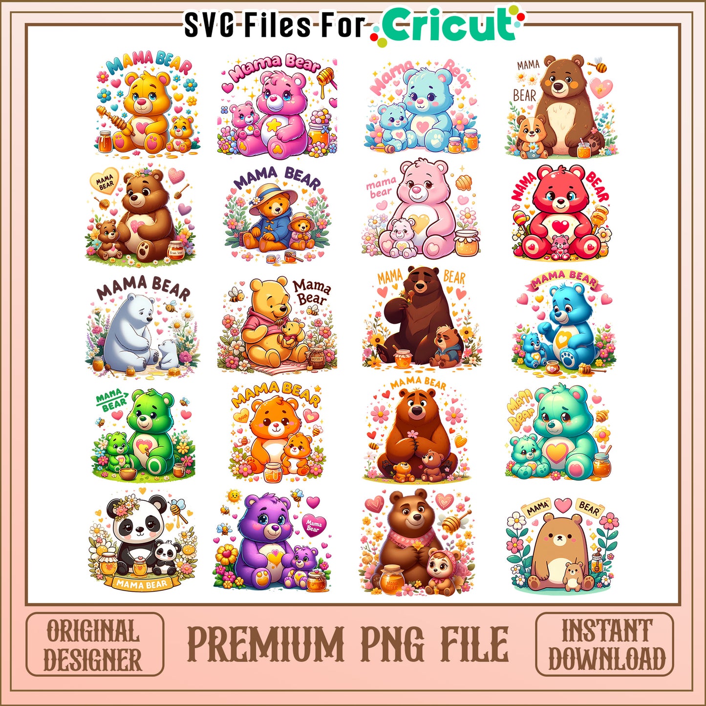 Mama bear design bundle png, care bears cartoon png, happy mother's day png