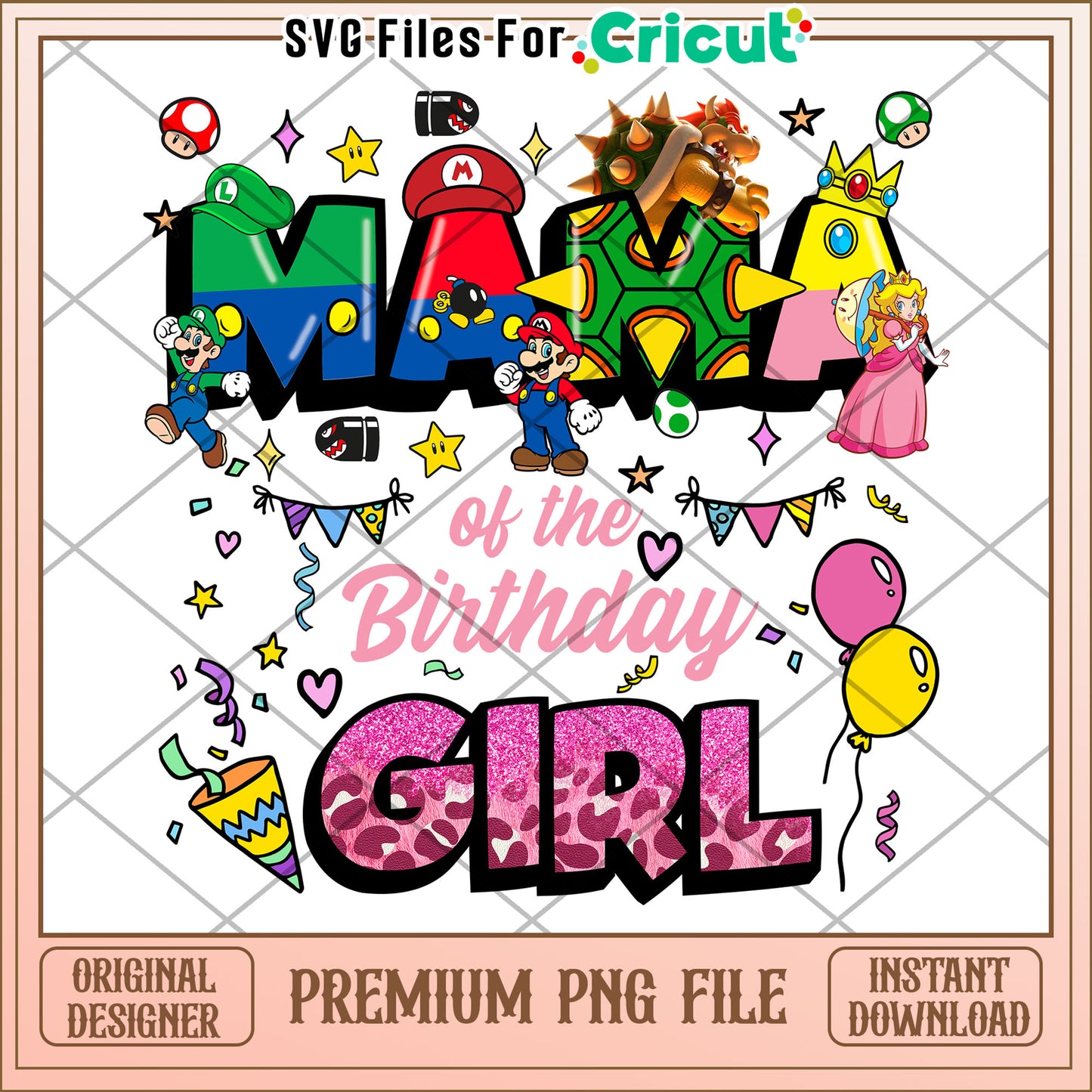 Mama Birthday Girl PNG Mario Design