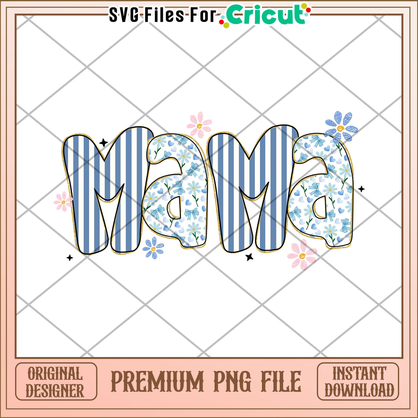 Mama PNG Blue Floral Striped Design
