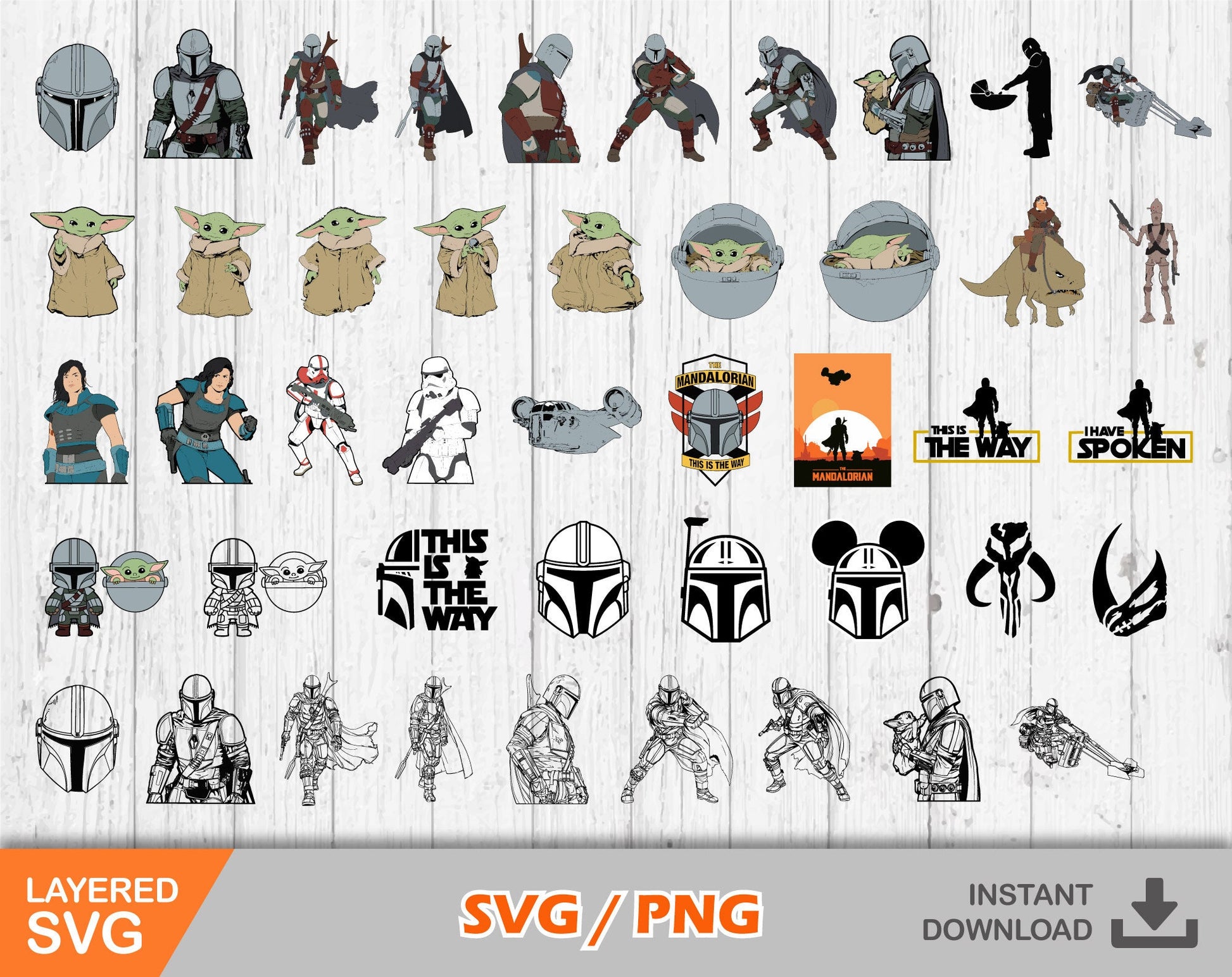 Celebrate with Mandalorian Clipart SVG Bundle! This collection features high-resolution designs perfect for personalizing birthday decorations, apparel, and more.
