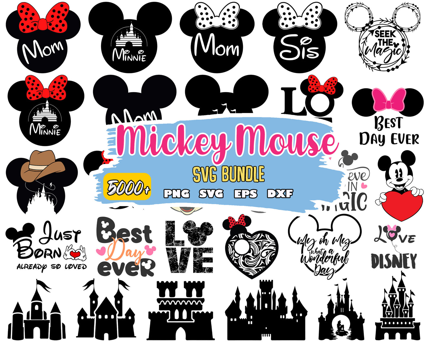 Mickey minnie head design bundle svg, disney castle svg