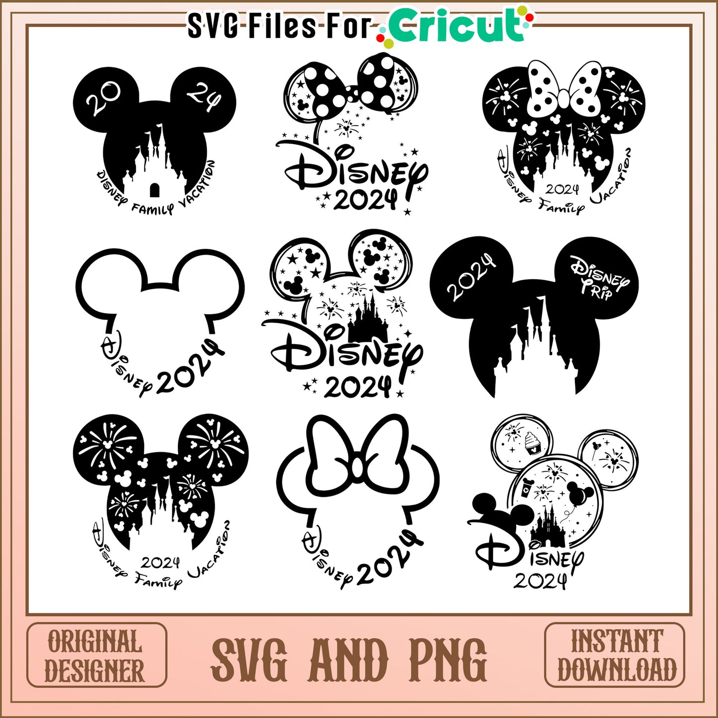 Mickey minnie head disney 2024 bundle svg is part of our Disney collection and brings the magic of beloved characters to your craft projects with vibrant, resizable images that are ideal for use with Cricut, Silhouette and other cutting machines. Featuring popular Disney characters like Mickey, Minnie and many more, these SVG files allow you to create fun, personalized items from T-shirts and mugs to party decorations and wall art. Perfect for Disney-loving kids and adults alike, these designs offer high-quality cuts for vinyl, paper or fabric projects, ensuring clean lines and professional results. With Disney SVGs, you can add a little bit of magic to any creative endeavor!