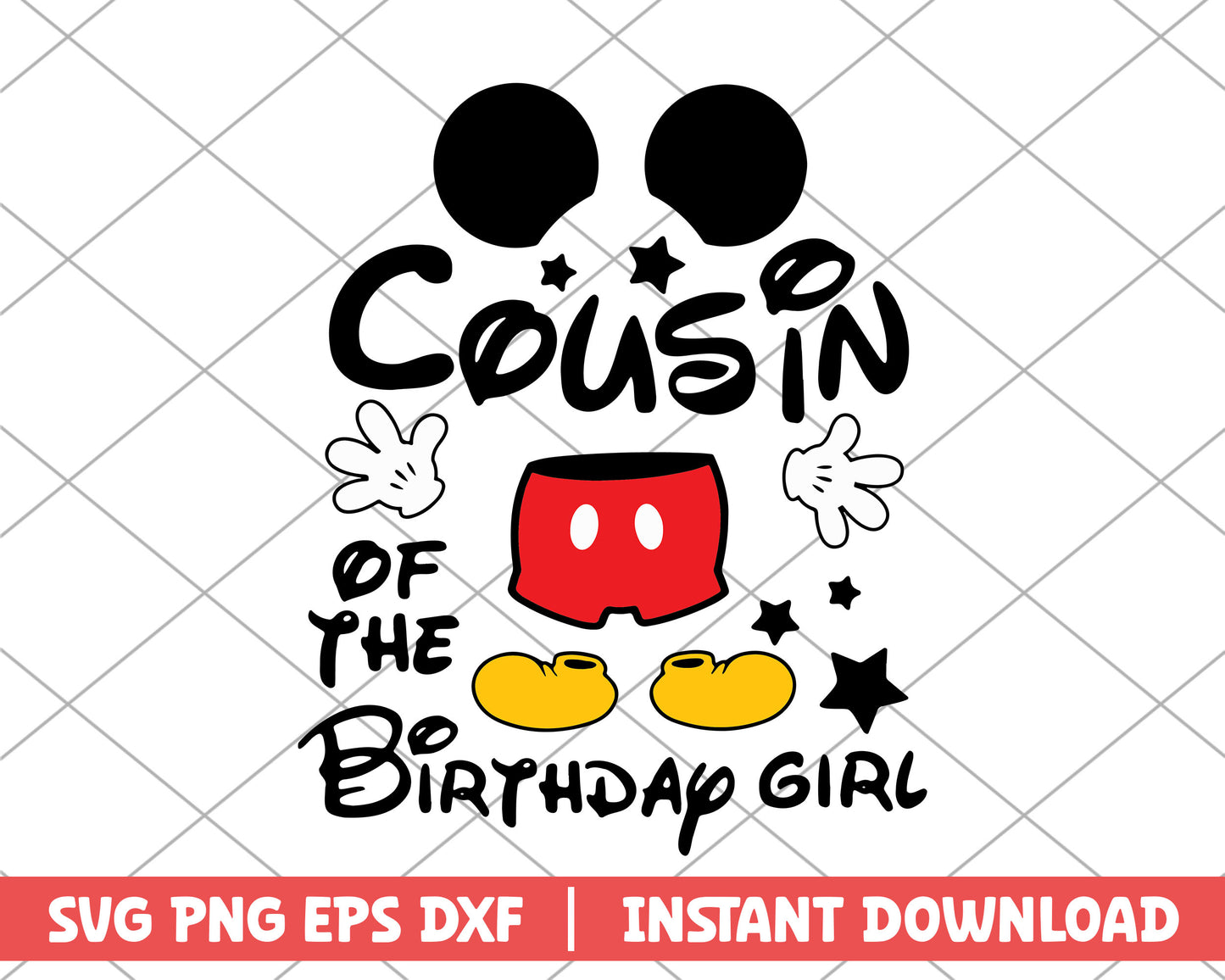 Mickey mouse cousin of the birthday girl svg