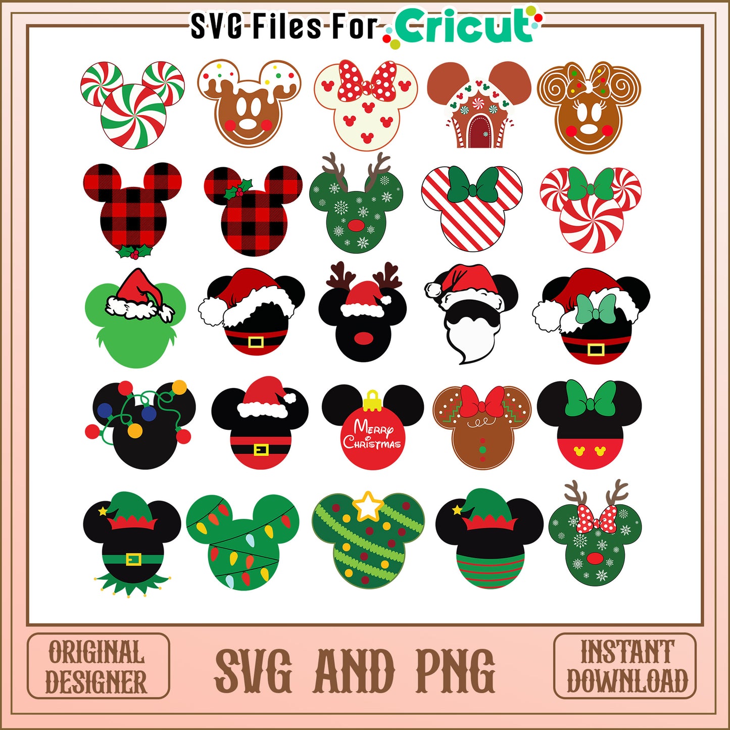 Mickey mouse head christmas bundle svg, mickey mouse christmas svg