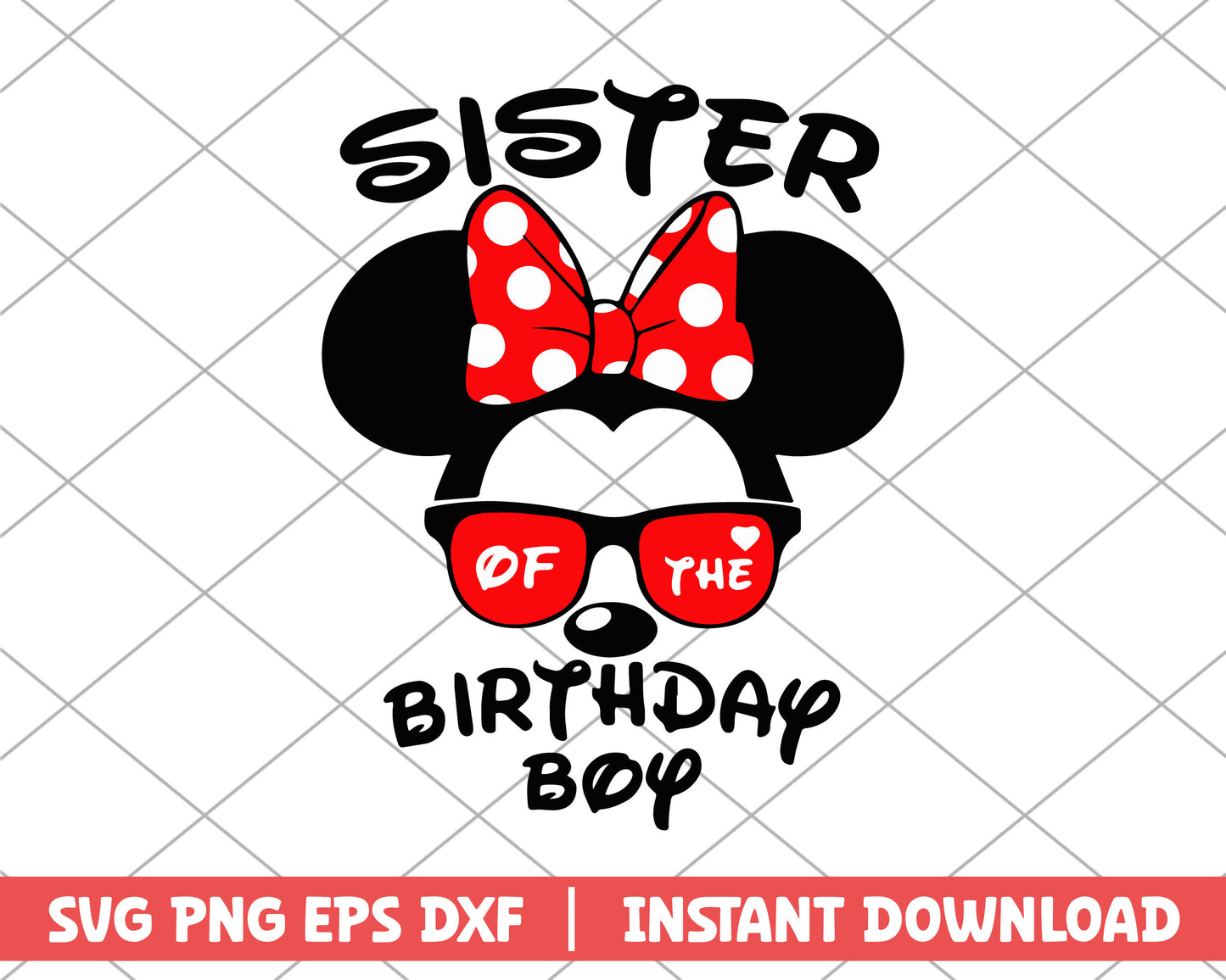 Minnie glasses sister of the birthday boy svg