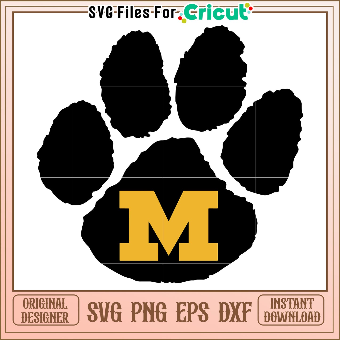 Paw Print with Letter M Design is part of our NCAA collection, featuring high-quality designs perfect for college sports fans and crafters. Whether you're making t-shirts, decals, mugs, or game-day gear, these SVG files are compatible with Cricut, Silhouette, and other cutting machines. Celebrate your favorite team with stylish, customizable designs that are perfect for personal and commercial projects. Get ready to cheer in style and create standout crafts with our NCAA SVG collection—perfect for any passionate college sports fan!