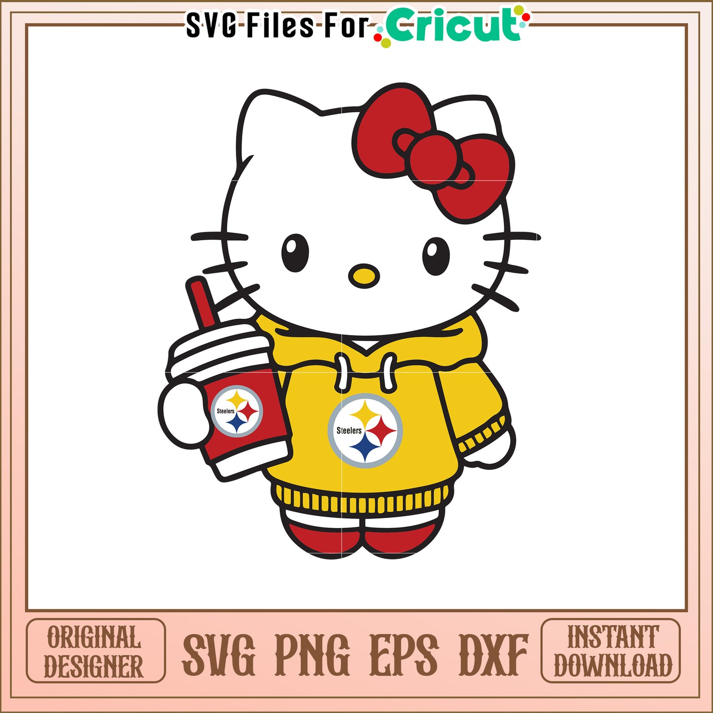 Pittsburgh Steelers Hello Kitty SVG is part of our NFL collection, perfect for football fans and creative projects! Whether you're crafting game day apparel, customizing mugs, or designing home decor, our high-quality SVG files will bring your favorite team to life. Featuring team logos, mascots, and football-inspired designs, these files are ideal for Cricut, Silhouette, and other cutting machines. Show off your team spirit with stunning graphics that are easy to use for personal and commercial projects. From Super Bowl celebrations to everyday fan paraphernalia.