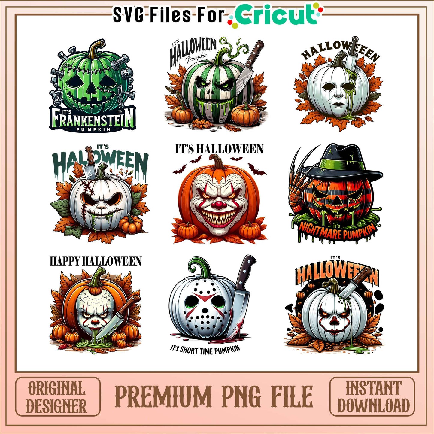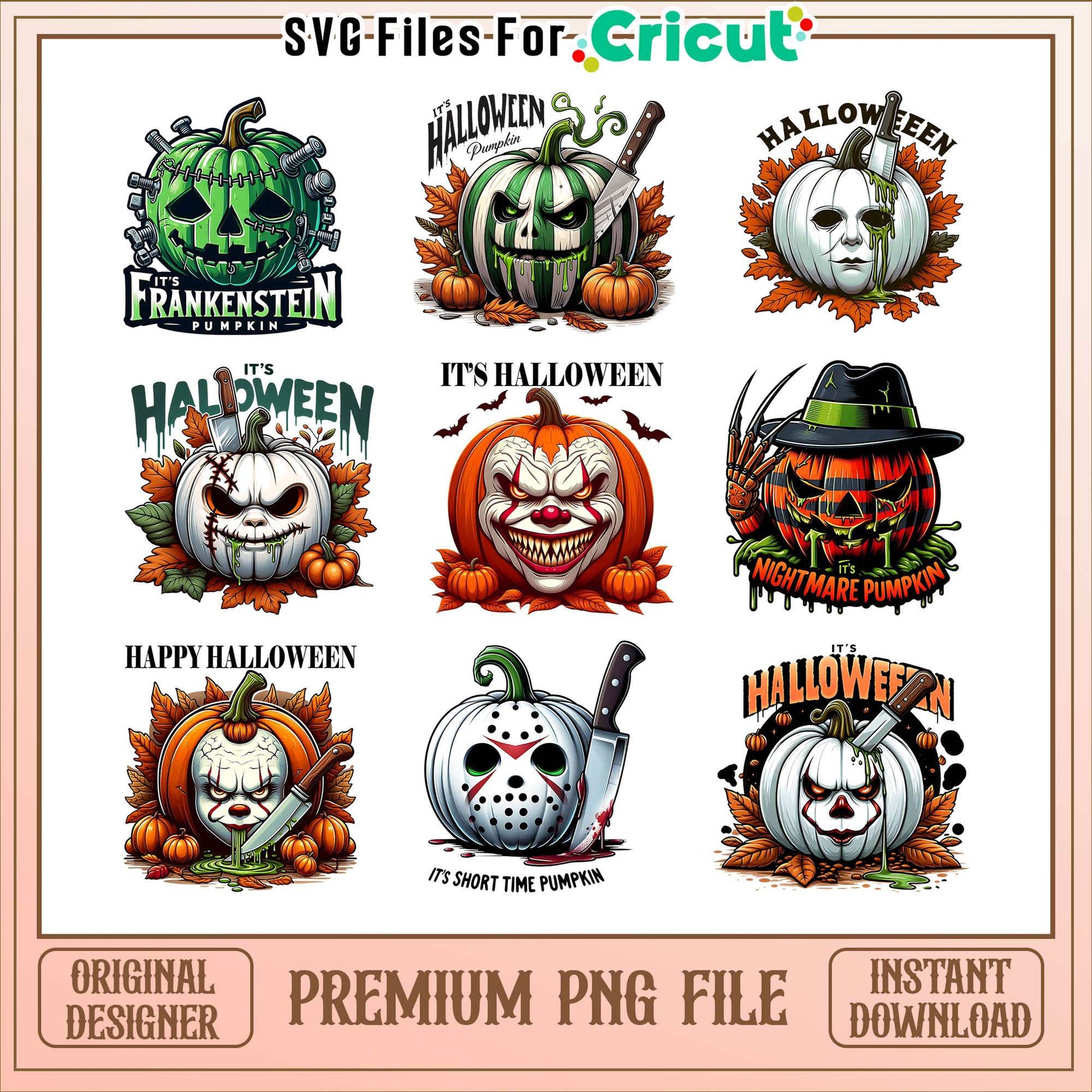 Pumpkin horror halloween bundle png, pumpkin horror movie png