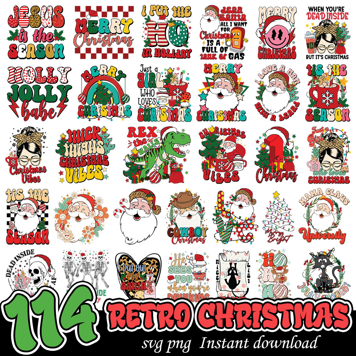 Retro Christmas Santa SVG Bundle, Christmas season svg bundle