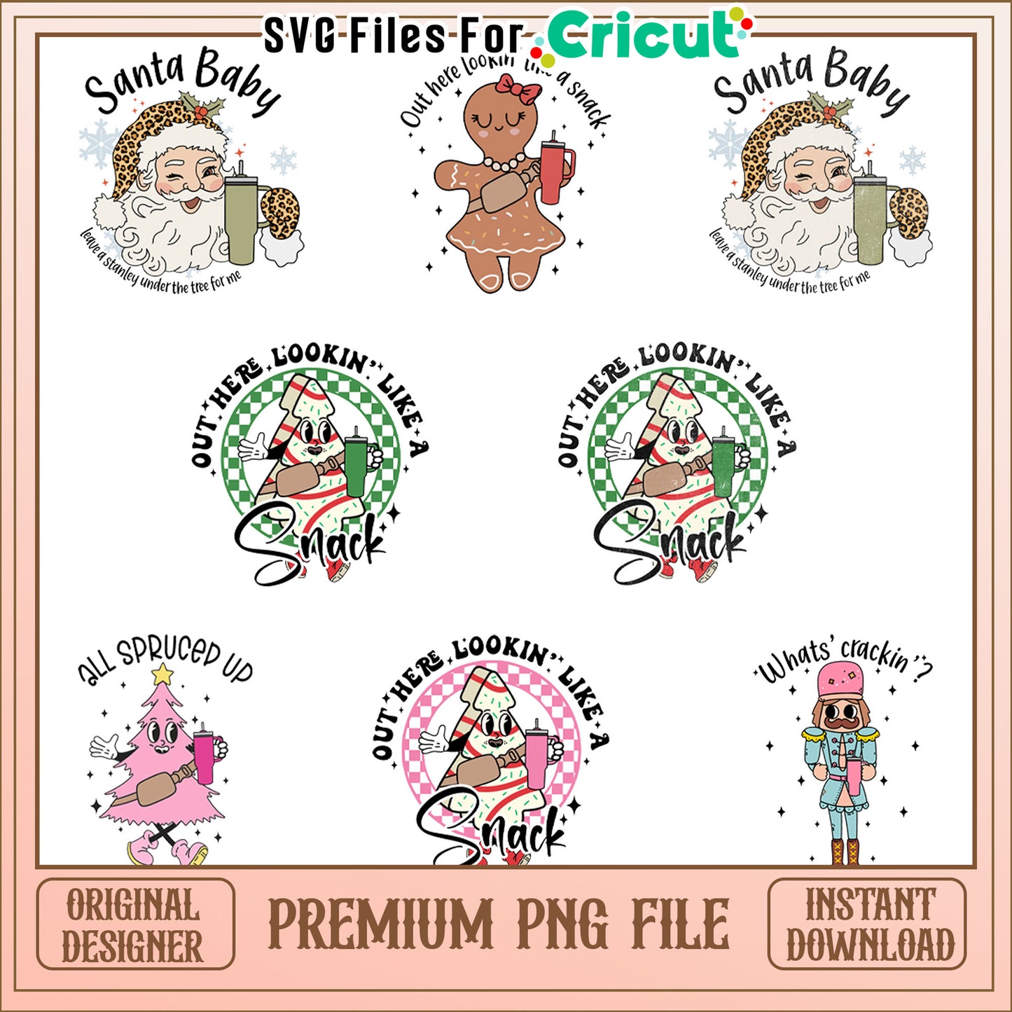 Santa baby leopard christmas bundle png, christmas tree cakes png