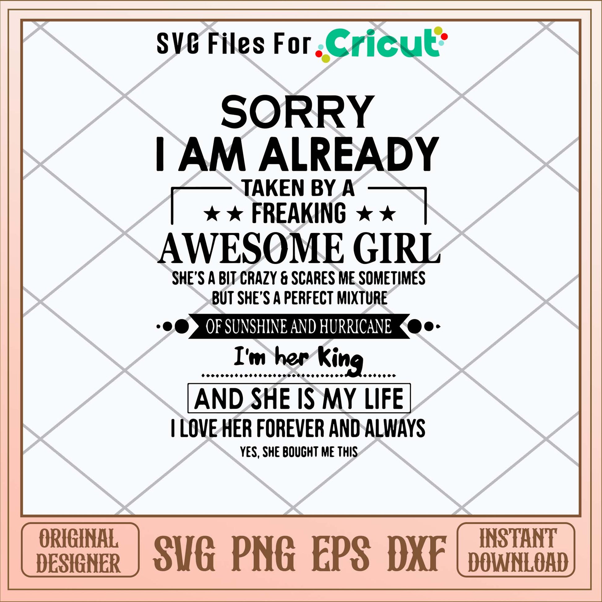 Sorry I am already taken by a freaking Awesome girl Svg, Png Dxf Eps File-Svgfilesforcricut