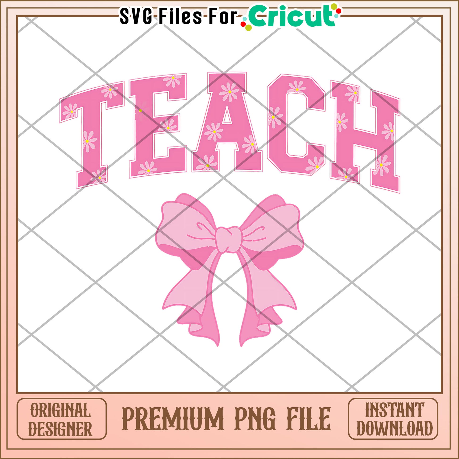 Teach pink bowtie design png, back to school supplies png, cartoon design png