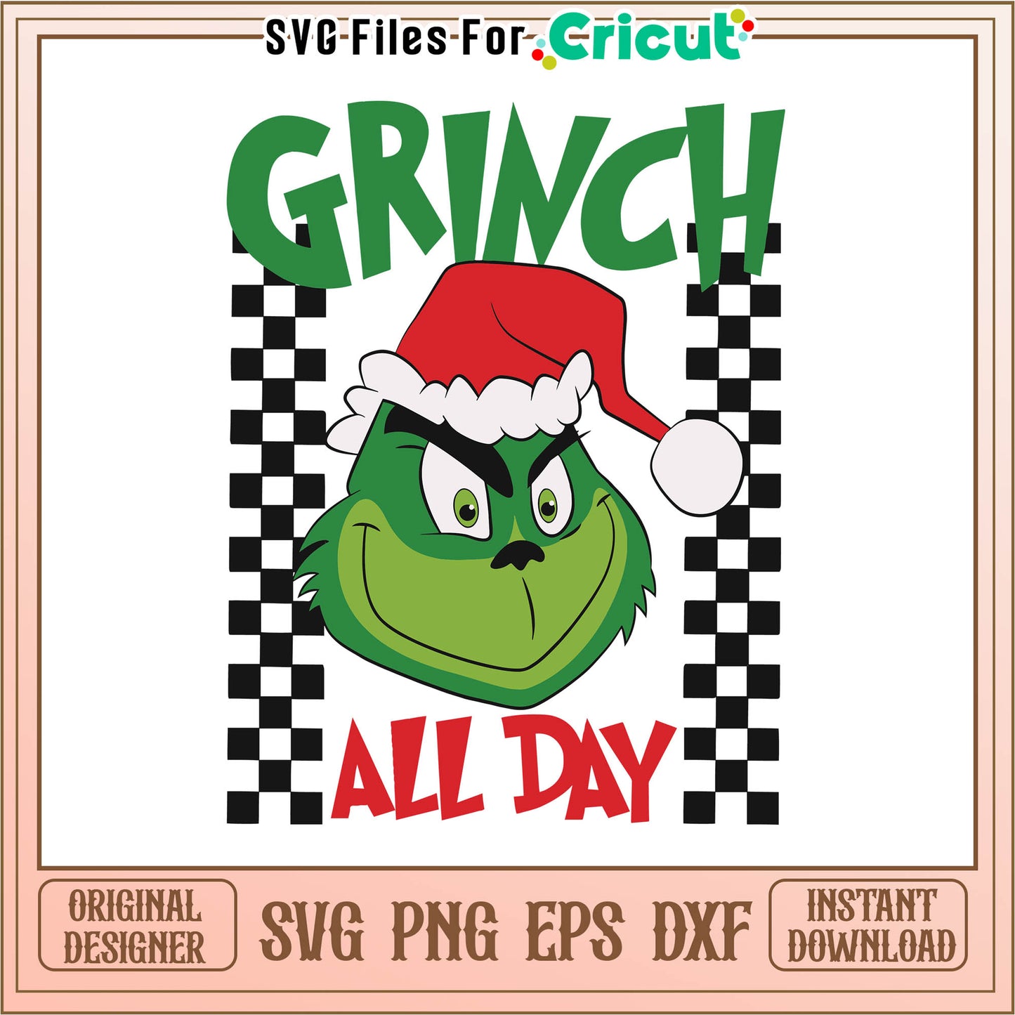 Vintage cute santa grinch all day svg is the perfect Christmas collection for holiday crafts, offering detailed, scalable images that work great with Cricut, Silhouette, and other cutting machines. From festive icons like snowmen, Christmas trees, and stockings to playful phrases and intricate mandalas, these SVGs add a creative touch to cards, ornaments, shirts, and home decor. The SVG format offers smooth lines and crisp details, making it ideal for both vinyl and paper crafts. Whether you're personalizing a gift or designing unique holiday decorations, Christmas SVG files allow for endless customization and make it easy to spread cheer in all your holiday projects.