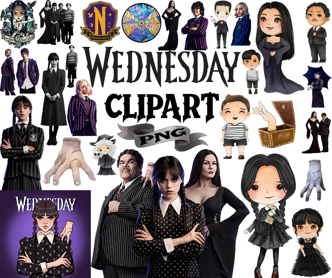 Wednesday png bundle, Nevermore Horror PNG Clipart, W - Wednesday PNG, Nevermore shirt clipart, Addams png, Wednesday clipart png