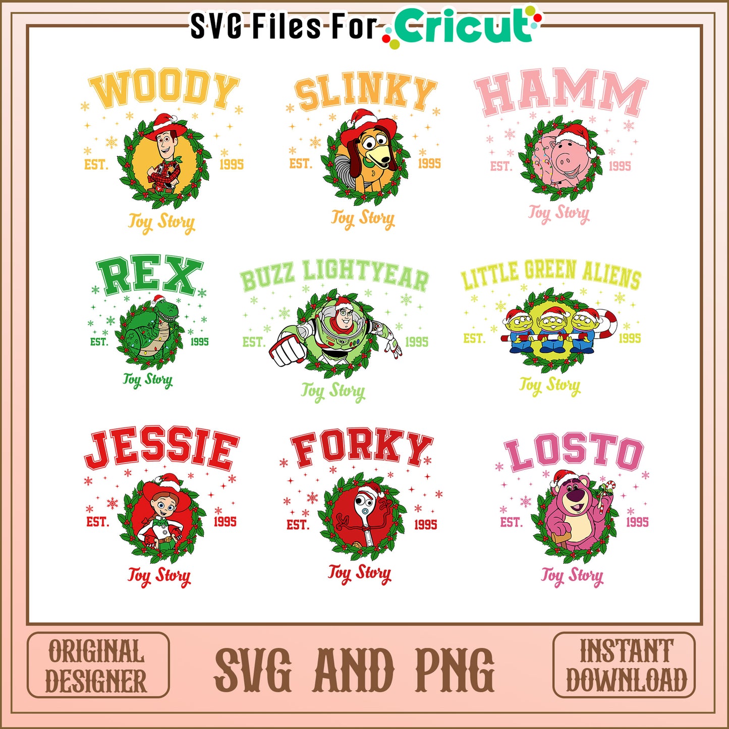 Woody est 1955 toy story christmas bundle svg, toy story christmas svg